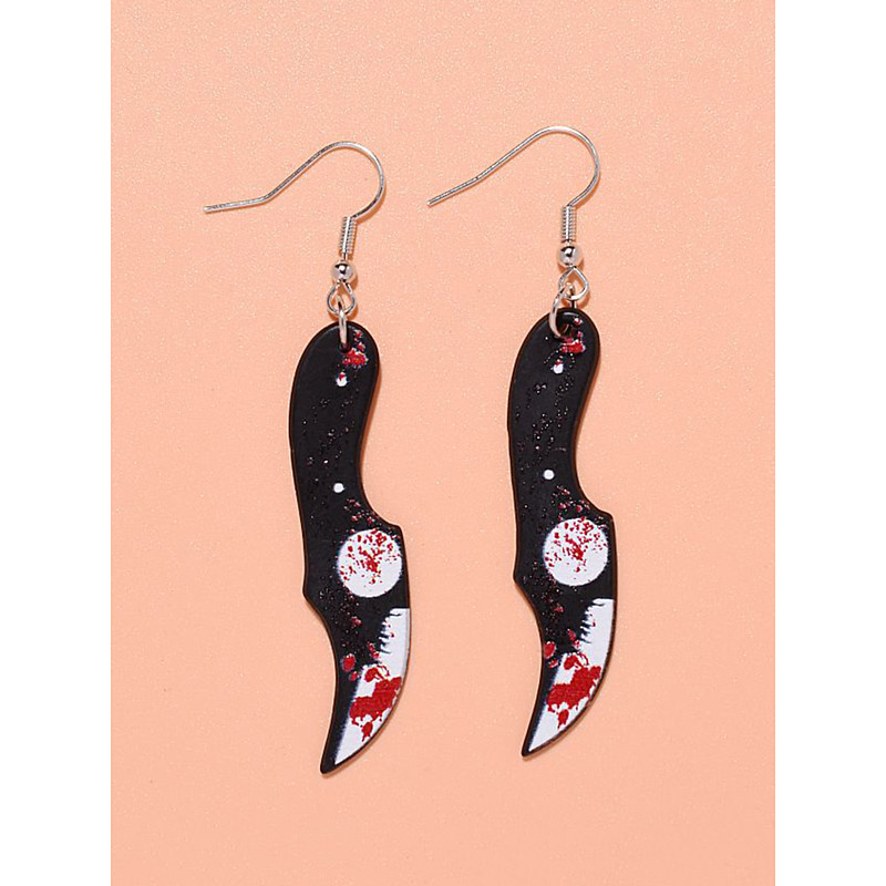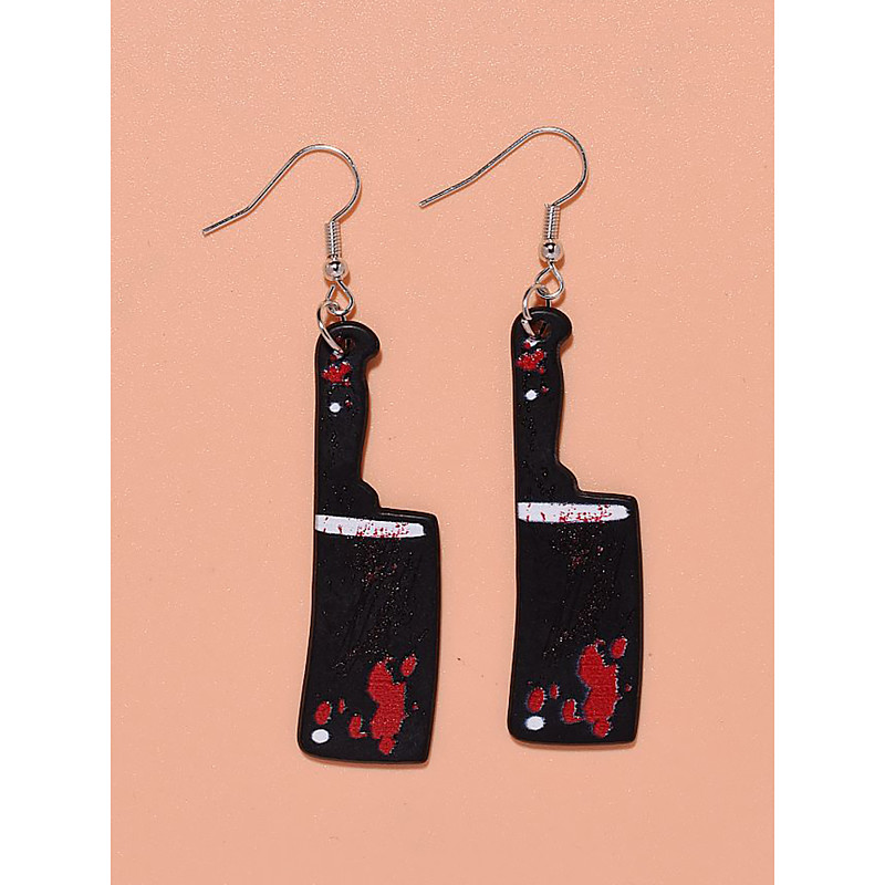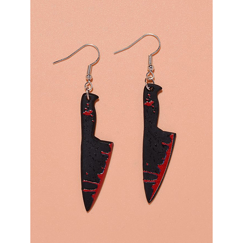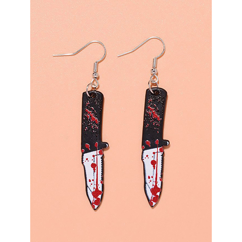 Halloween Knife Earrings with Blood Splatter Design – Scary Costume Jewelry for Women's Horror Themed Parties