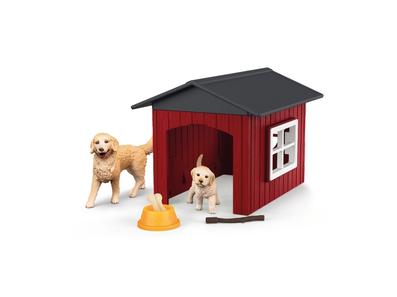 schleich FARM WORLD Hundehütte mit Goldenretrievern, Tier, Farm, Farm animals / farm toys, 3 Jahr(e), Mehrfarbig