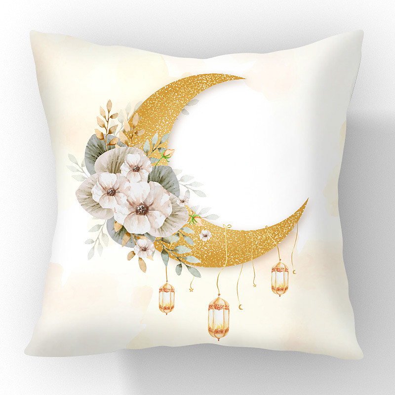 Ramadan Eid Throw Pillow Cover, Muslim Crescent Moon Print, Middle Eastern Decor, Linen Sofa Cushion, Durable Seat Pillow for Living Room and Prayer Room