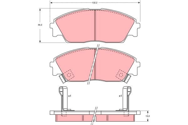 Jarrupalasarja, levyjarru, Etuakseli Trw GDB763 - honda - OE 45022-SF1-000, 45022-SF1-010, 45022-SF1-020