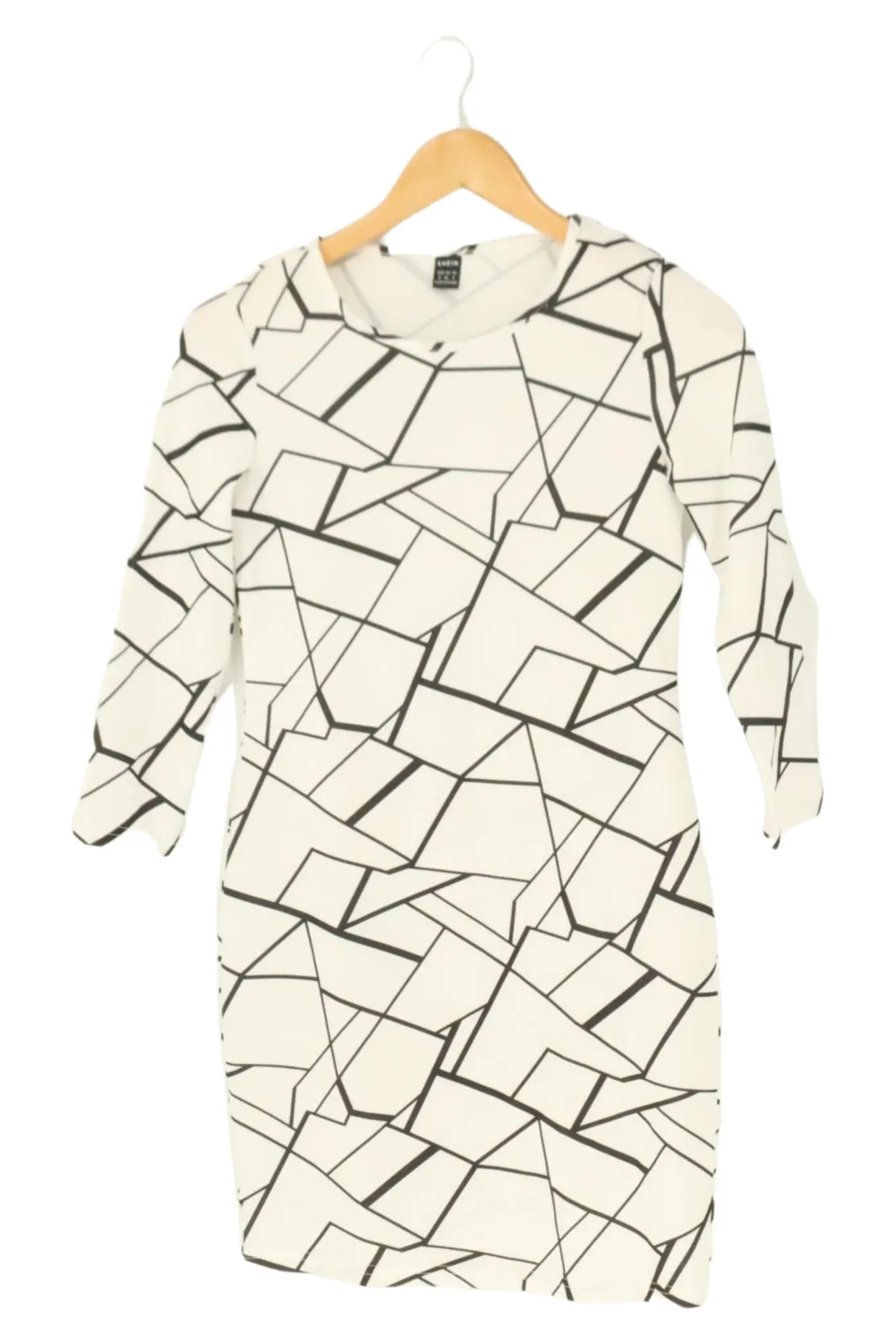 SHEIN Etuikleid Damen Gr. S Weiß Geometrisch Mittellang