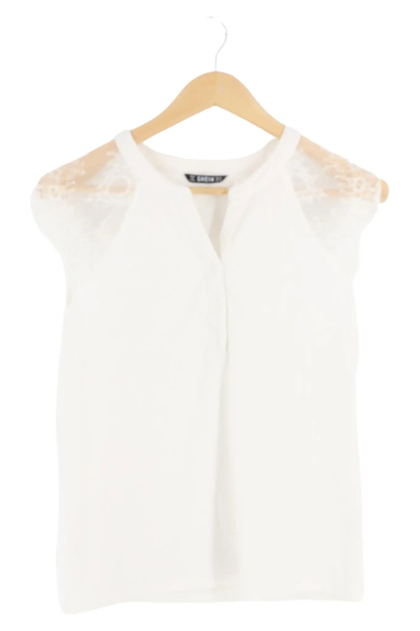 SHEIN Bluse Damen Gr. M Weiß Ärmellos Spitze Elegant