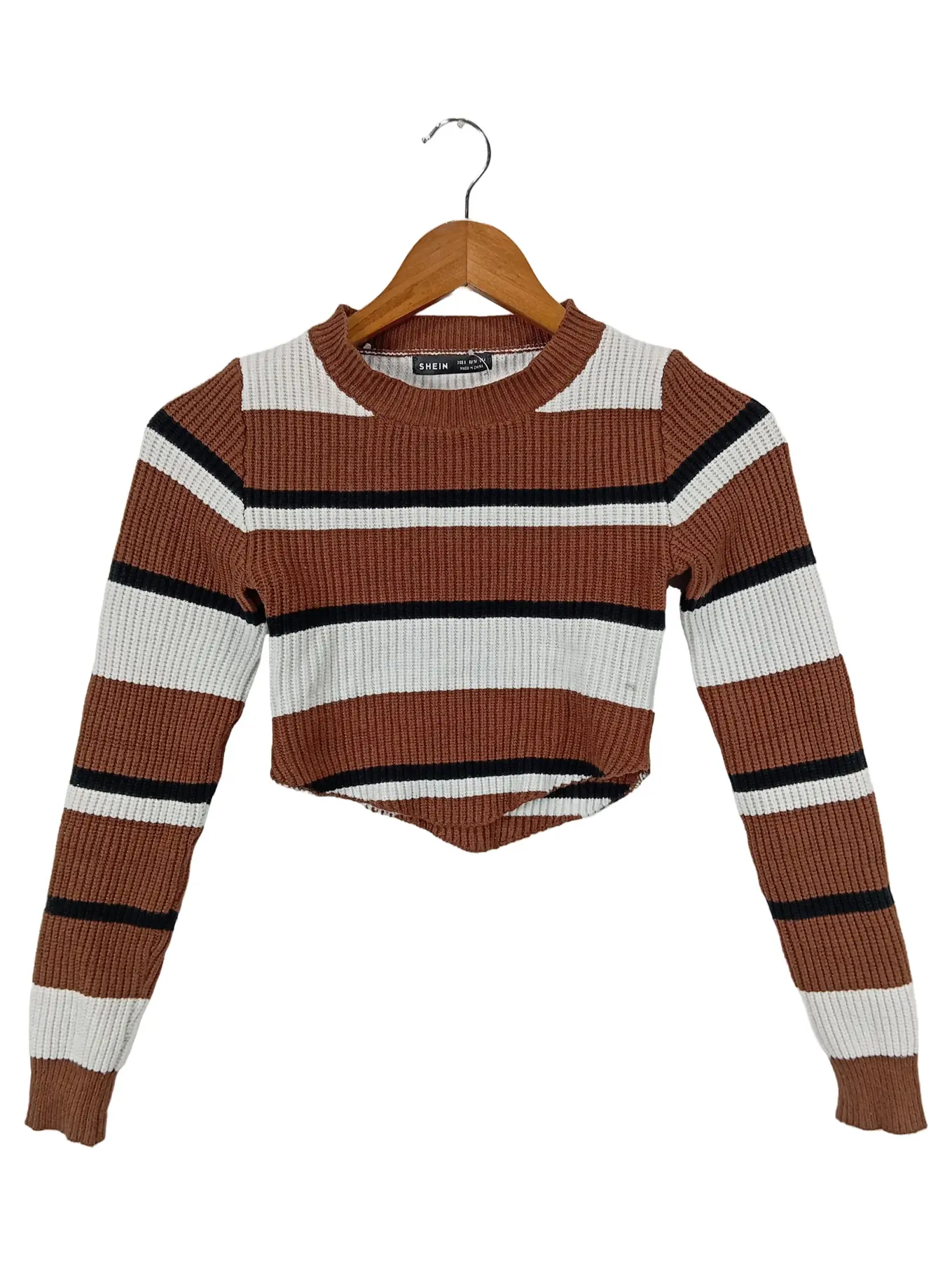 SHEIN Langarmshirt Damen 36 S Braun Weiß Schwarz