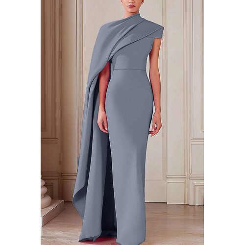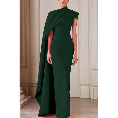 Sirena Tromba Lunghezza al pavimento Abito da Sera Elegante Stile Celebrità Manica Corta Collo Alto Festa in giardino Matrimonio Crepe Elasticizzato con Pieghe