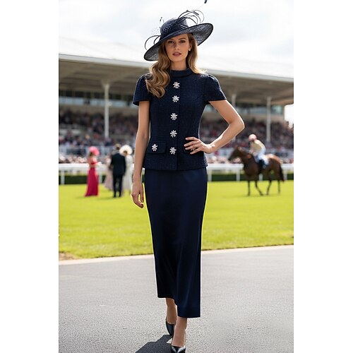 Sirena Tromba Lunghezza alla caviglia Abito Derby Abito da cerimonia per signora Manica Corta Collo Alto Elegante Derby del Kentucky con Fiore
