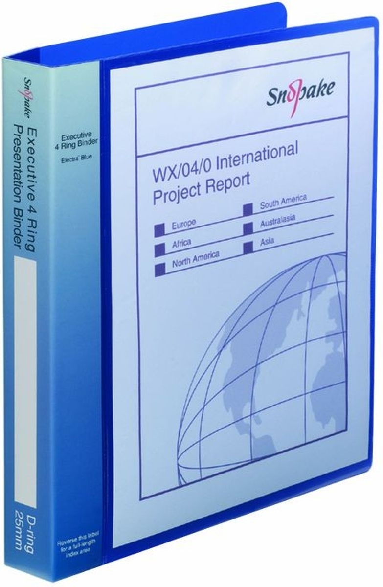 Snopake Präsentations-Ringbuch Executive A4 4 Ringe 25mm electra blau Packung mit 4 Stück