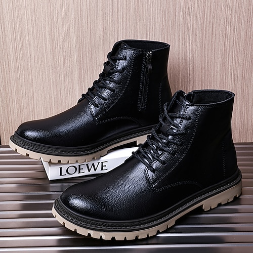 stivali da uomo in similpelle marrone con lacci e suola in gomma: stivali eleganti e di supporto per il lavoro all'aperto e l'abbigliamento casual