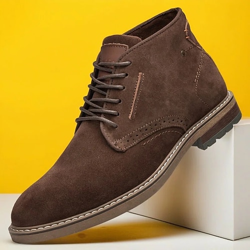 stivali casual alti da uomo in similpelle marrone con suola in gomma antiscivolo – scarpe da passeggio resistenti per escursioni, viaggi e uso quotidiano