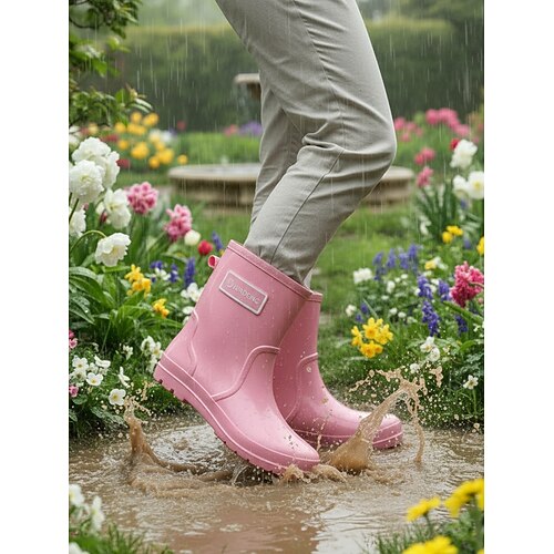 stivali da pioggia rosa da donna a metà polpaccio - stivali in gomma impermeabili e resistenti con suola antiscivolo design vivace ed elegante per giardinaggio, passeggiate sotto la pioggia, lavori in giardino e avventure al parco