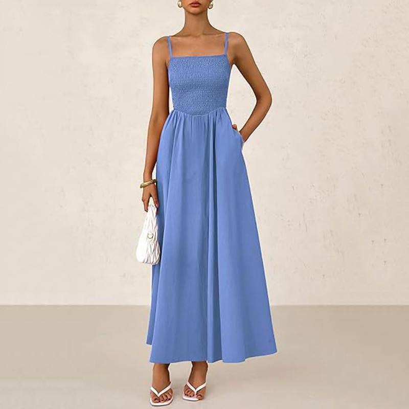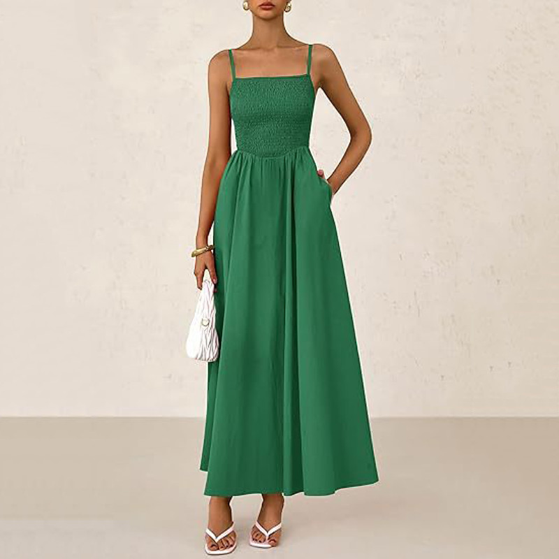 Women's Long Dress Maxi Dress Cotton Linen Dresses Casual Dress Summer Dress Slip Dress Fashion Modern Daily Weekend Regular Fit Plain Sleeveless Straps Black Blue Green Khaki Summer