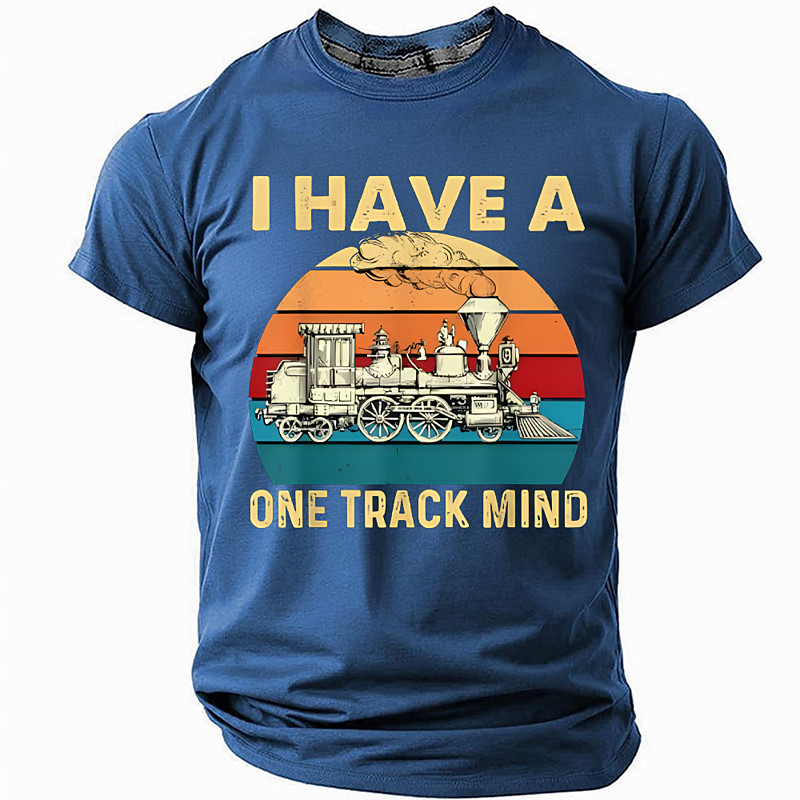 Mens Graphic T-Shirt I Have A One Track Mind Funny Train Pun Short Sleeve