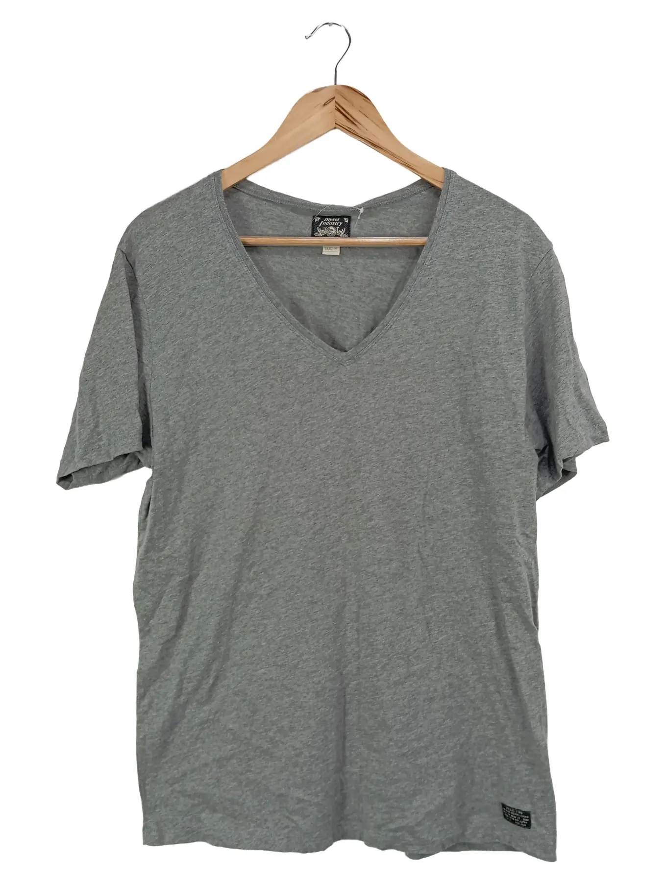 DIESEL T-Shirt Herren M Grau Baumwolle V-Ausschnitt