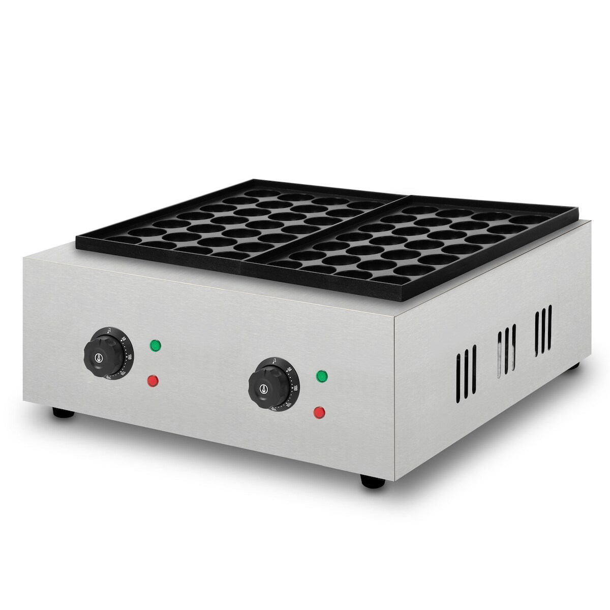 VERTES Takoyaki Maker – Elektrisch 4000W, 2 Gusseisenplatten mit Antihaft, 56 Mulden, 2 Thermostate bis 300 °C, Edelstahlgehäuse