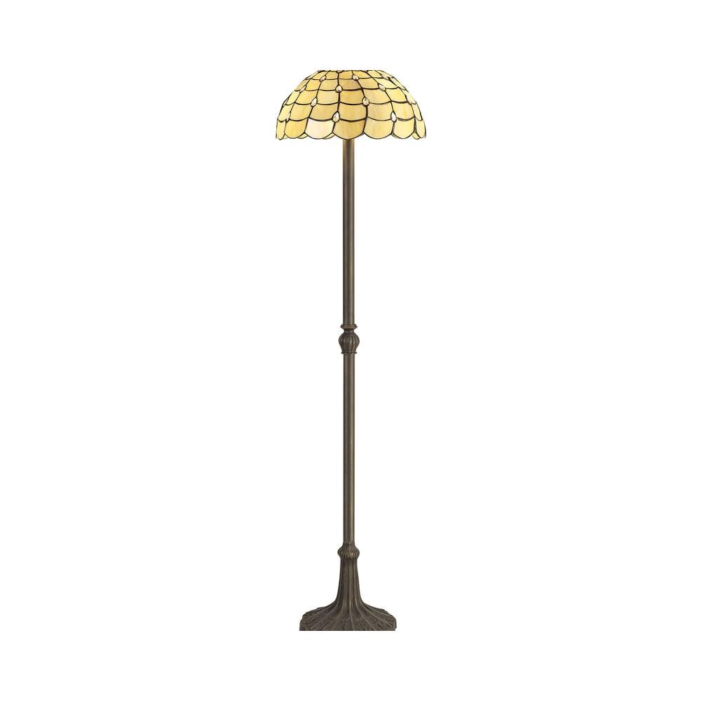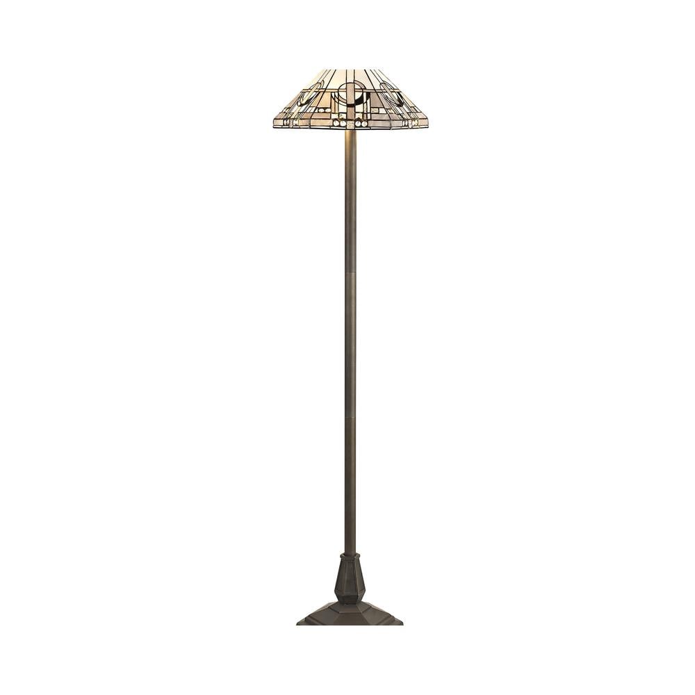 Equinox 2 Light Octagonal Floor Lamp E27 With 40cm Tiffany Shade White/Grey/Black/Clear Crystal/Aged Antique Brass Luxuria