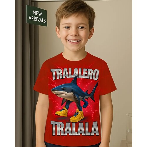T-shirt grafica per ragazzi con squalo Tralalero Tralala - maglietta estiva casual viola vivace con squalo stampato in 3D maglietta grafica giocosa con scollo rotondo e maniche corte, traspirante, da