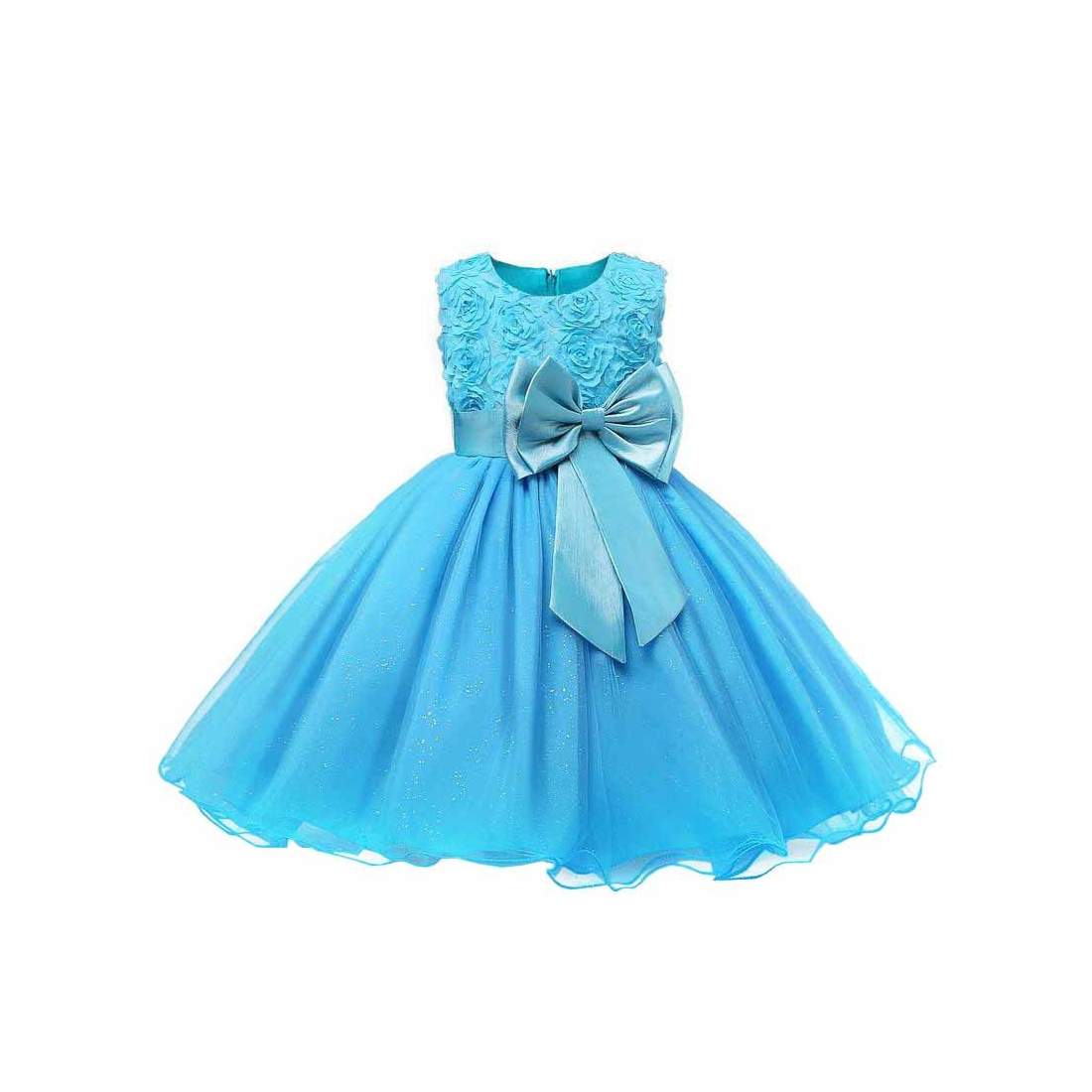Festkjole with Bow and Flowers - Turkis