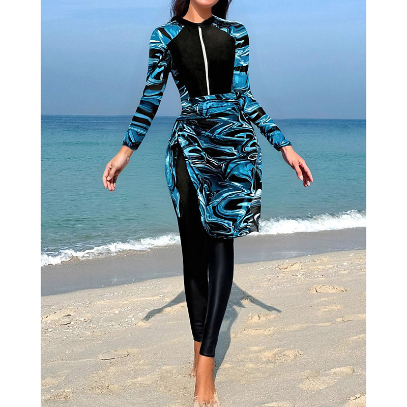 Women's Rash Guard Bathing Suit One Pieces Printed UV Protection Elastic Long Sleeve Swimwear Zip Up Surfing Beach Swimming Summer