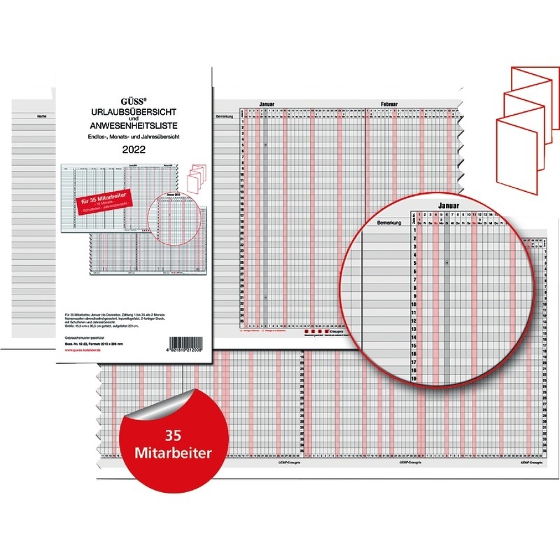 GÜSS Urlaubs- und Abwesenheitsliste 2022, bis 35 Mitarbeiter