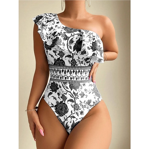 Per donna Costumi da bagno Intero Monokini Costume da bagno Volant Controllo della Pancia Vita alta Snello Senza schiena Elegante Vacanza Collo asimmetrico Senza Maniche Costumi da bagno