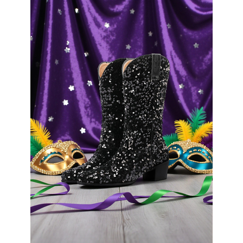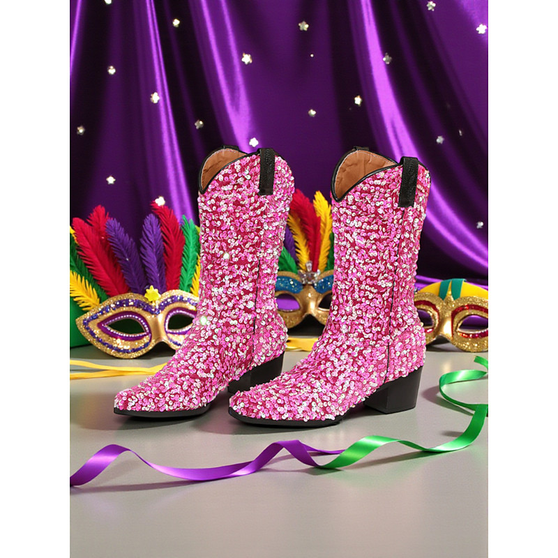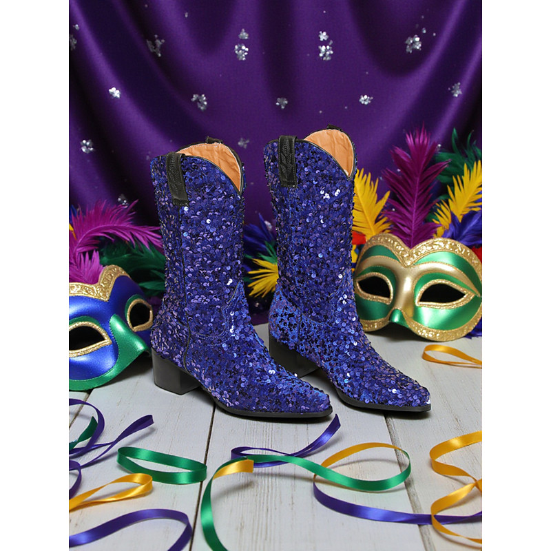 Women's Purple Sequin Western Cowboy Boots with Block Heel, Glittery Design, Perfect for Carnival, Party, and Festival Wear