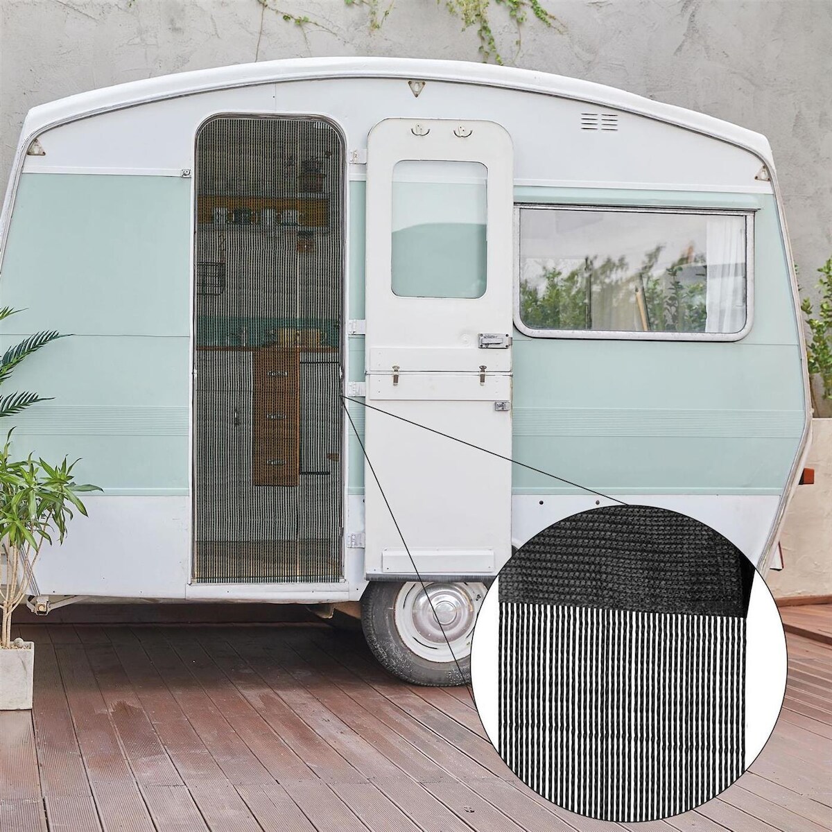 Bestlivings Fadengardine 56 x 185 cm, Fadenvorhang für Wohnwagen Schwarz plus Gardinenstange