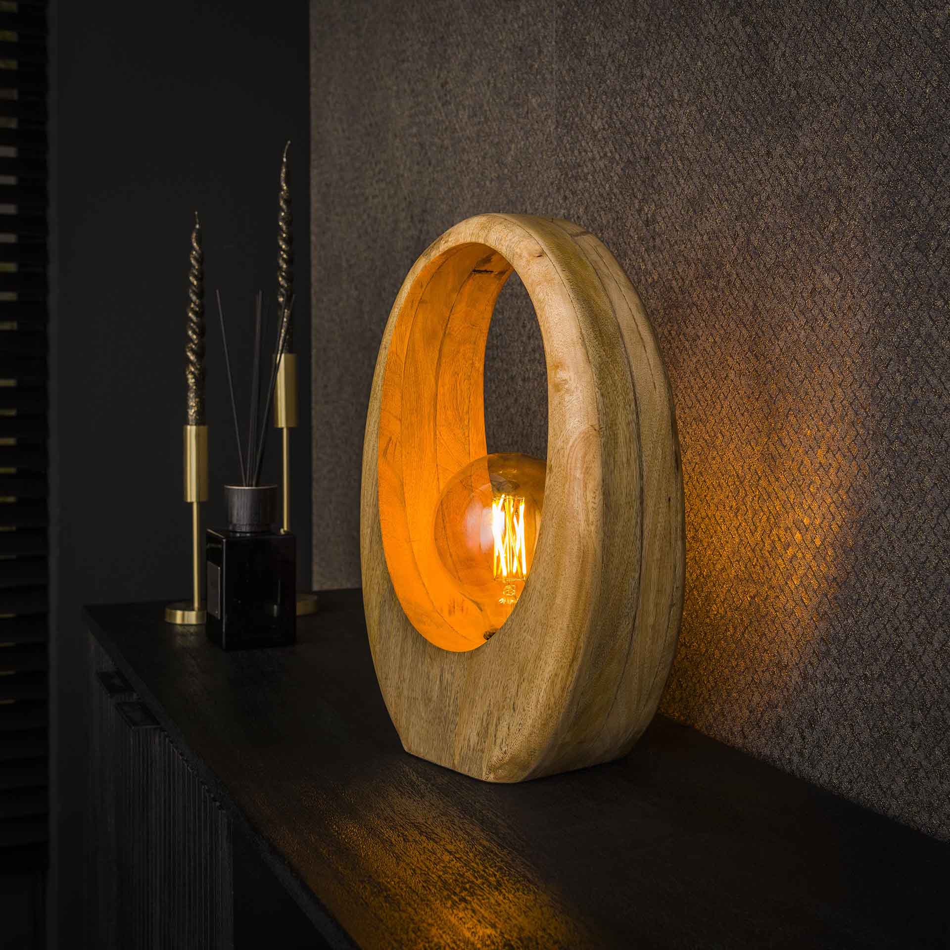 Vico Arch Wood - tafellamp - 20 x 13 x 30 cm - bruin