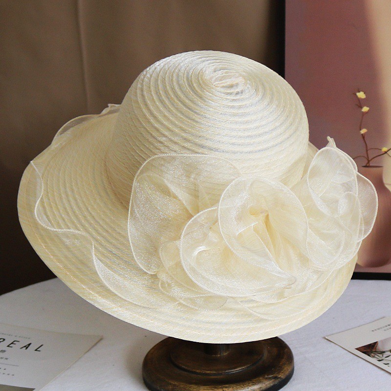 Women Wide Brim Bowler Hat Vintage Floral Wool Felt Fedora Floppy Elegant Fascinator Hat with Veil Lady Church Party Bucket