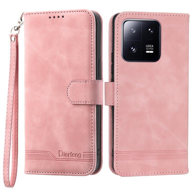 DIERFENG DF-03 Plånboksfodral för Xiaomi 13 Pro 5G - Konstläder - Rosa