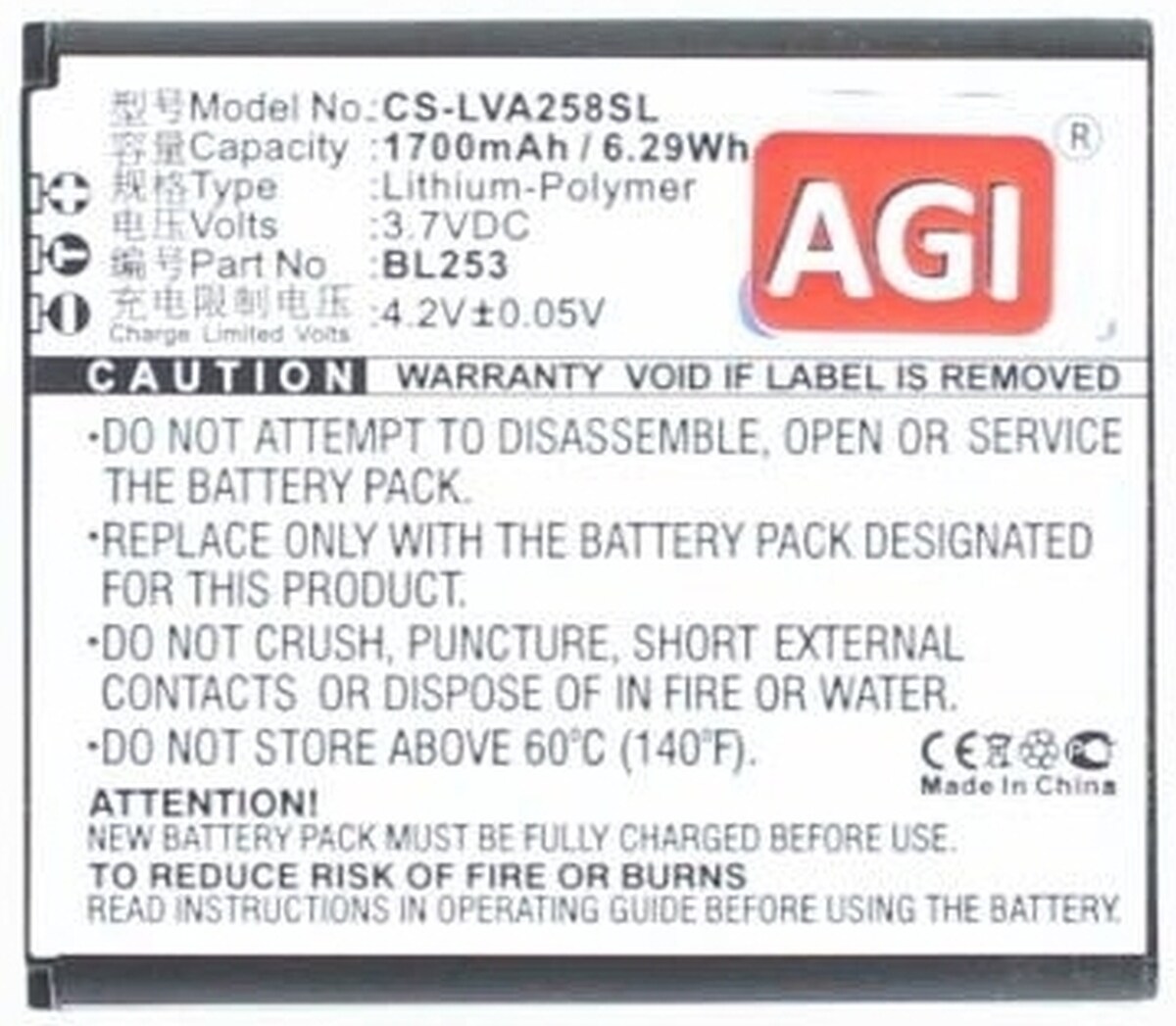 AGI Akku für Lenovo B Li-Pol 3,7 Volt 1700 mAh schwarz