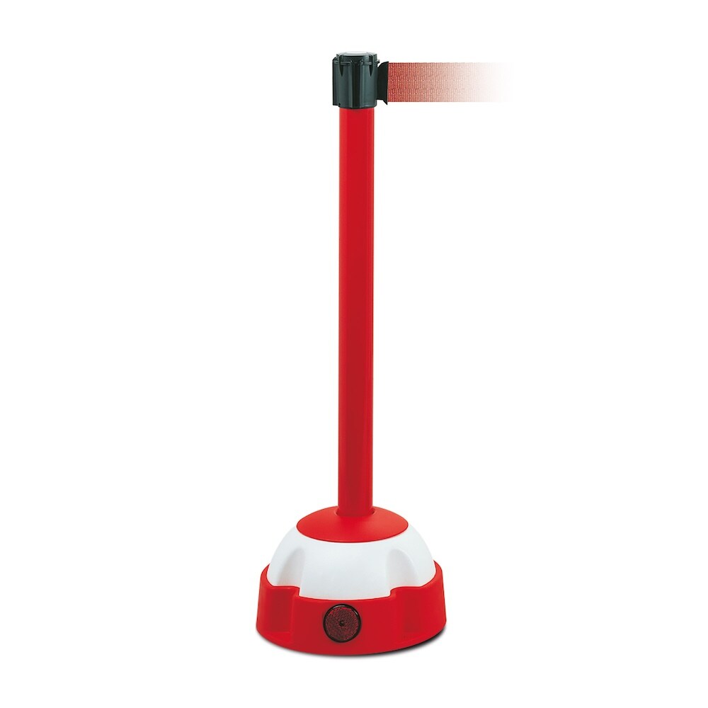PROREGAL Gurt-Warnständer mit integriertem Gurtband inkl. befüllbaren Kunststofffuß | HxØ 98,5x5cm | Gurtbandlänge 3m | Rot, Gurt Rot